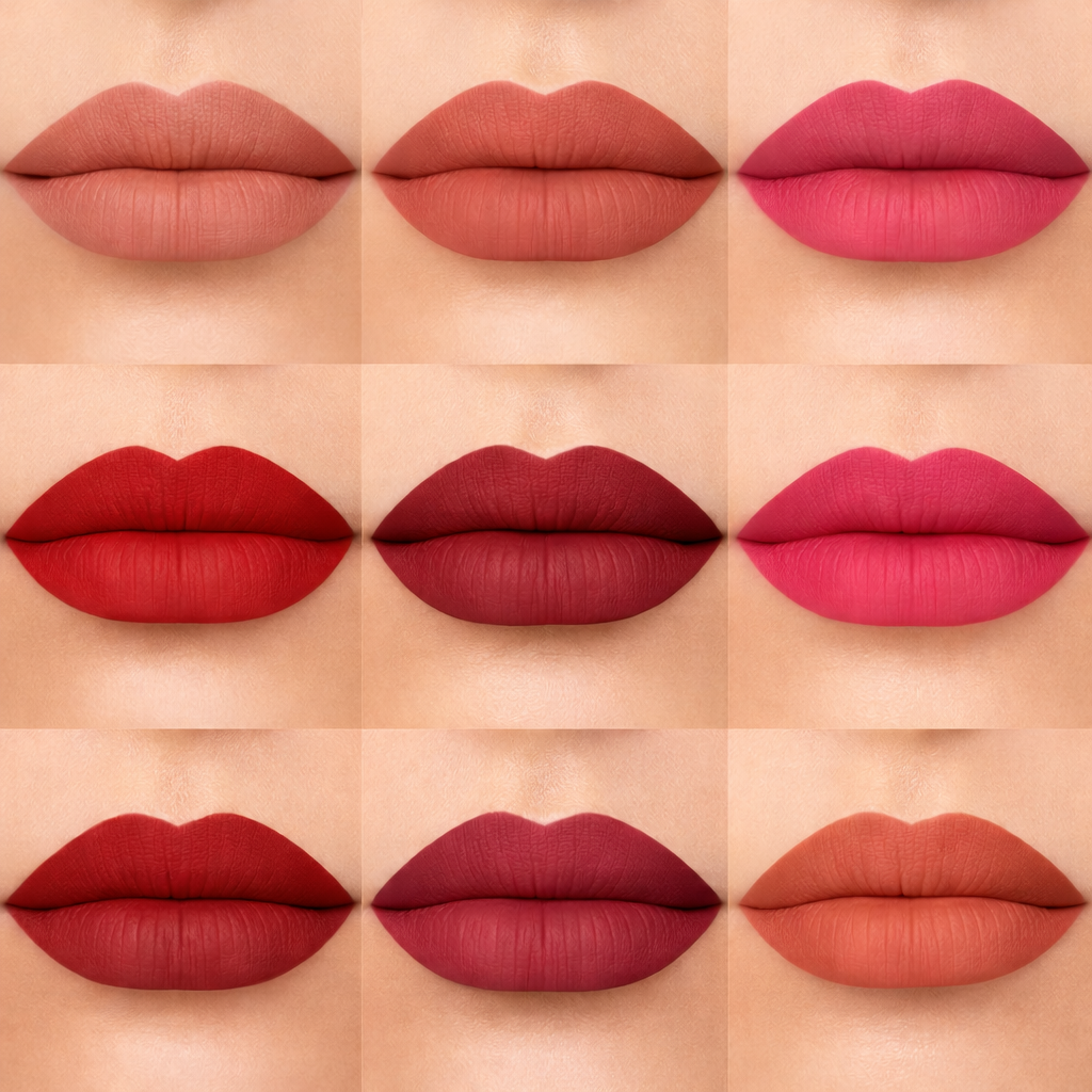 I rossetti matte hanno una finitura opaca e lunga durata, quelli lucidi offrono un effetto brillante e idratante, mentre i rossetti liquidi combinano colori intensi con una texture leggera.